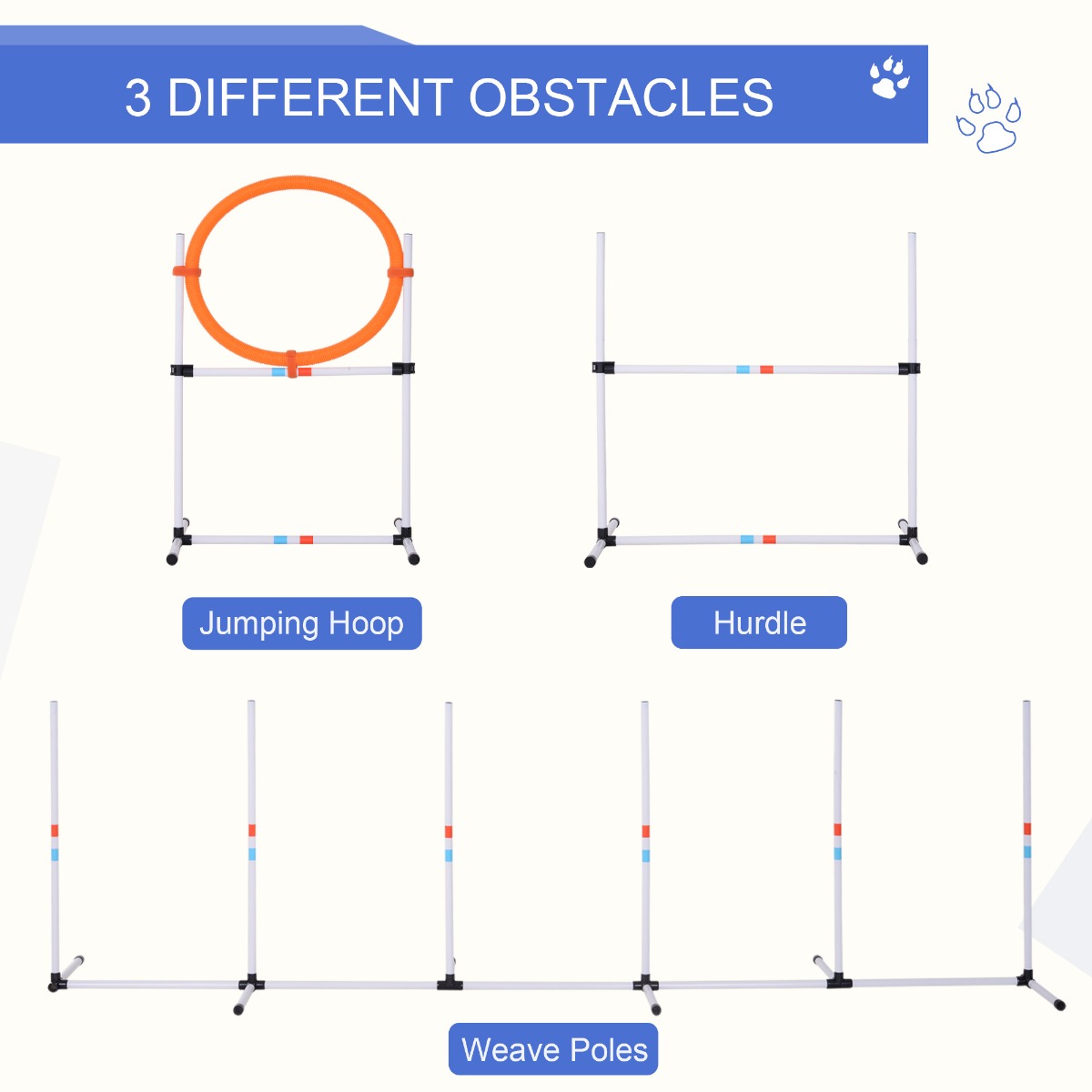 - - 3pc set,including1 high jumper, 1 jumping ring, and 6 weave poles